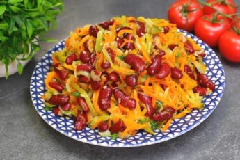 Дуже смачний і ситний пісний салат з квасолі з морквою і цибулею