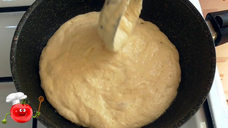 ✅Перед першим млинцем я злегка змащую сковороду олією. Такі млинці можна пекти як на сухій сковороді, так і в невеликій кількості олії. Тісто виходить густим, тому викладаємо його на сковороду і розподіляємо ложкою/ополоником.